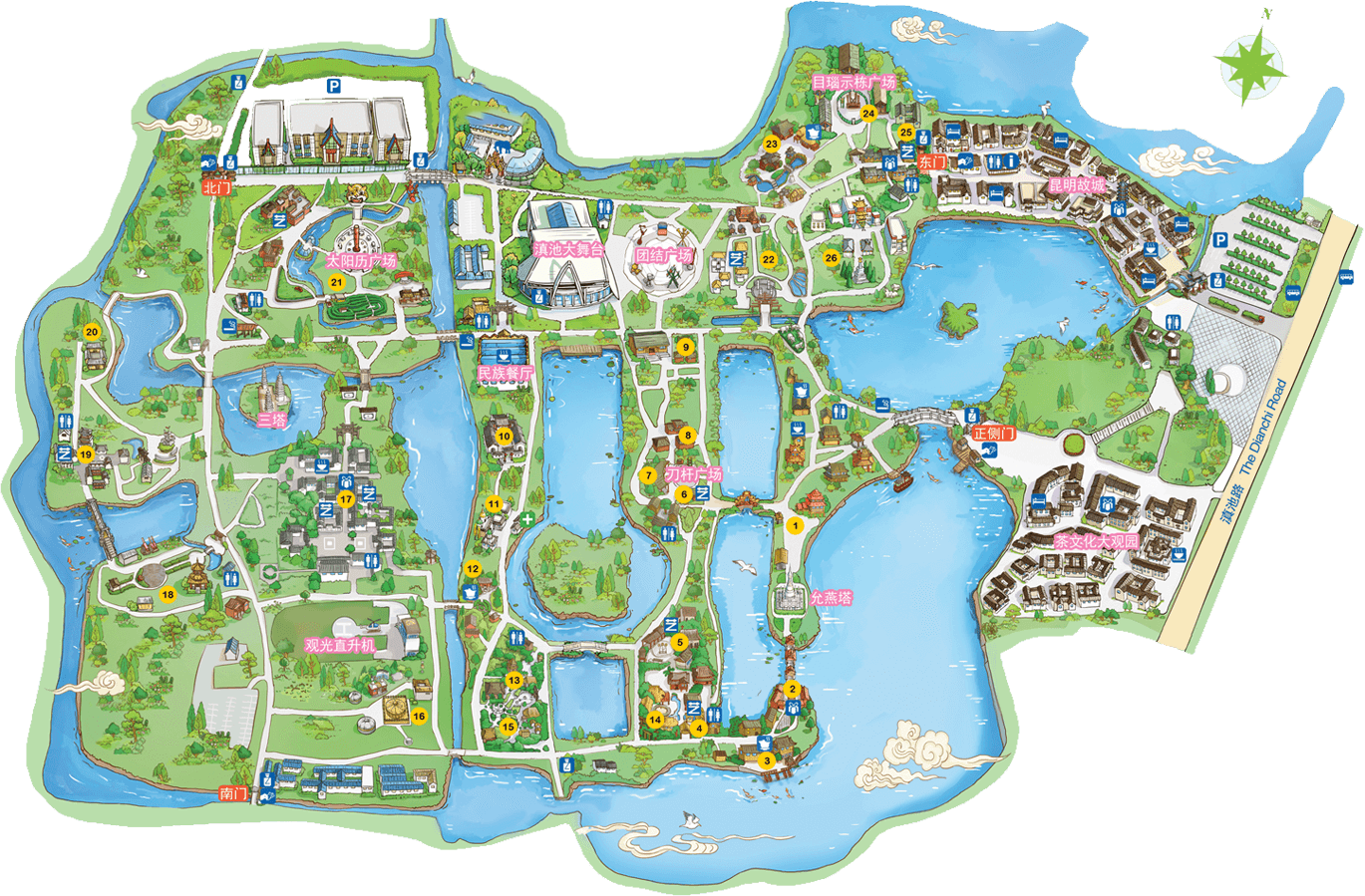 哈尼族是我國(guó)西南邊疆歷史悠久的農(nóng)耕民族,人口約130余萬(wàn),主要居住在云南省紅河、元江、瀾滄江流域的無(wú)量山區(qū)和哀牢山區(qū)。哈尼寨占地15畝,展現(xiàn)了最具有代表性的蘑菇房和愛(ài)尼母子房,日月廣場(chǎng);有表現(xiàn)哈尼族關(guān)于魚生萬(wàn)物傳說(shuō)的大型浮雕,有表現(xiàn)哈尼族遷徙傳說(shuō)的圖騰柱;有體現(xiàn)生產(chǎn)生活的磨房、龍巴門、秋千場(chǎng)、梯田;寨神樹和祭石表現(xiàn)了哈尼族“萬(wàn)物有靈、多神崇拜”的宗教信仰。哈尼傳統(tǒng)的節(jié)日有“年首扎勒特”、“苦扎扎”...